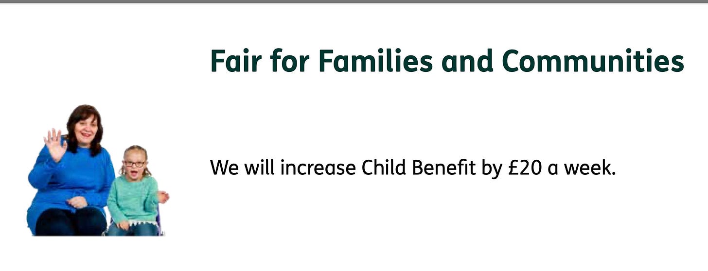 Plaid want to increase child benefit by £20 per week (image from their ‘Easy Read’ version of the manifesto).